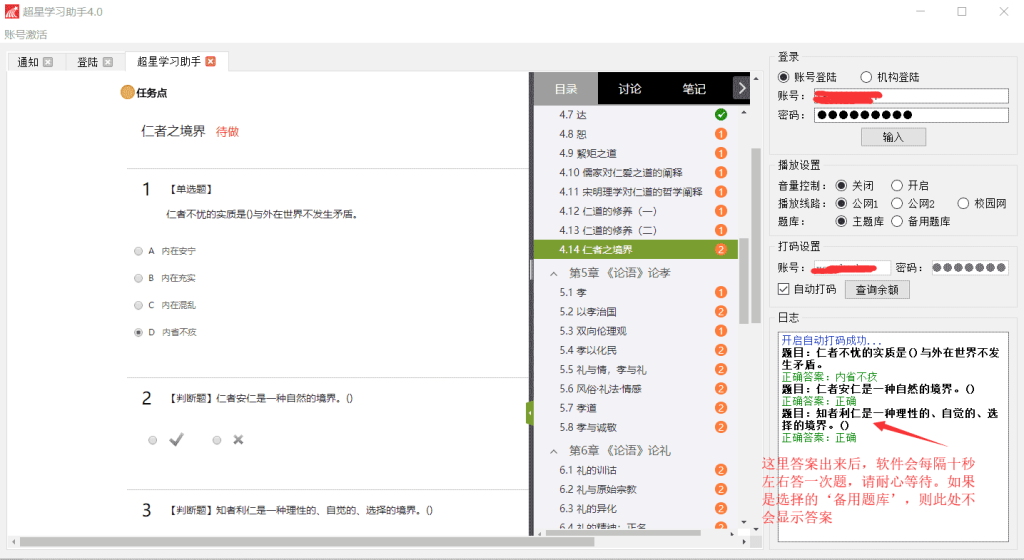 超星学习助手完全采用模拟鼠标键盘操作,自动回答视频中弹题,安全度100%
